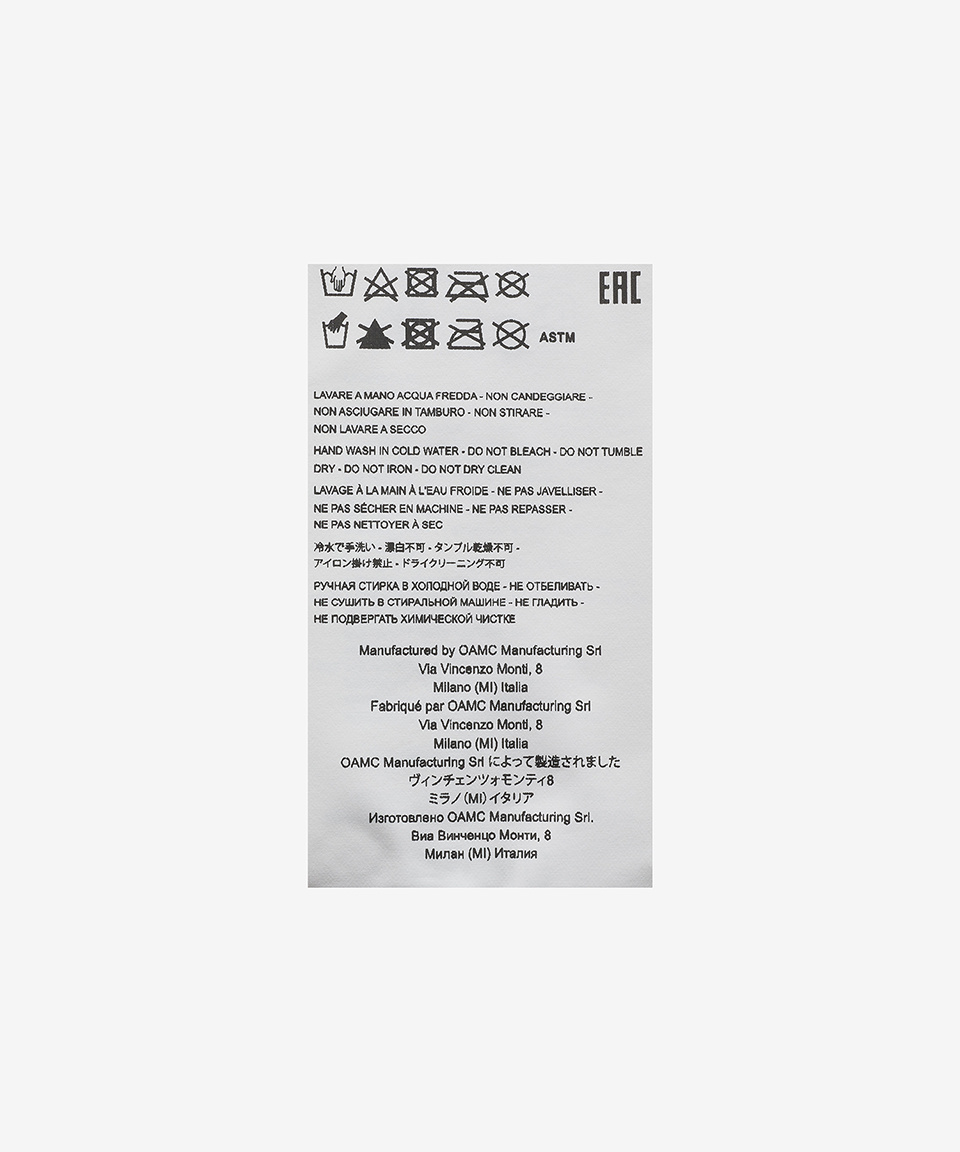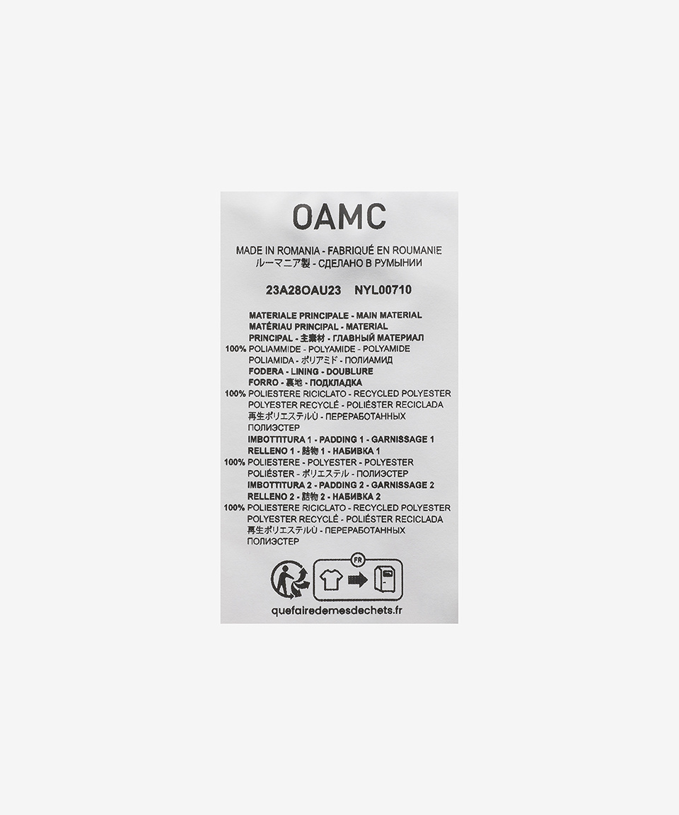오에이엠씨(OAMC)는 2013년 칼하트 WIP와 슈프림 출신의 디자이너 듀오가 설립한 브랜드입니다. Over All Master Cloth의 약자인 OAMC는 자기표현이라는 주제 아래 만들어졌습니다. 음악, 미술, 영화, 사진 등 다양한 예술에서 영감을 받아 스트릿, 워크 웨어와 밀리터리 요소를 프리미엄 디자인에 녹여내 오래 입을 수 있는 질 좋은 제품을 제공합니다.