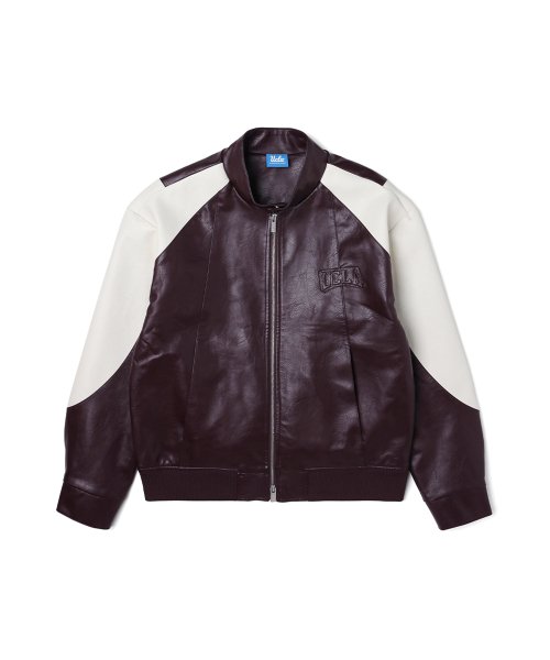 남성 페이크레더 하이넥 배색 점퍼[WINE](UZALE02_89)
