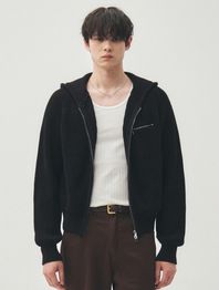 [미나브X후디진호] 후디드 니트 집업 자켓 [블랙]