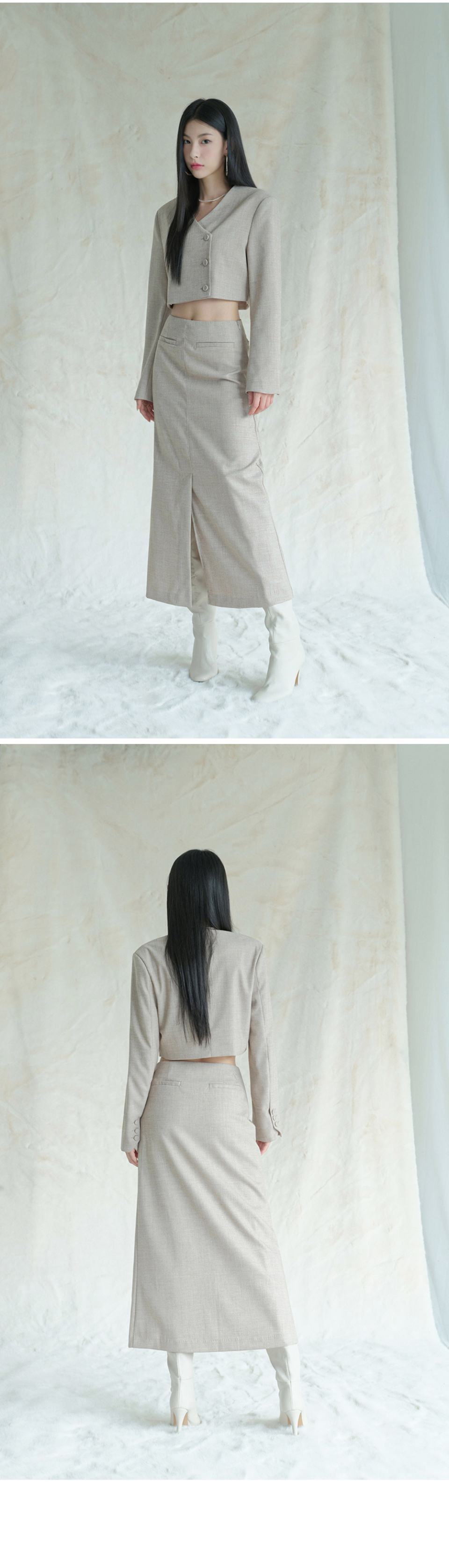 Karin Slit Maxi Long Skirt BEIGE