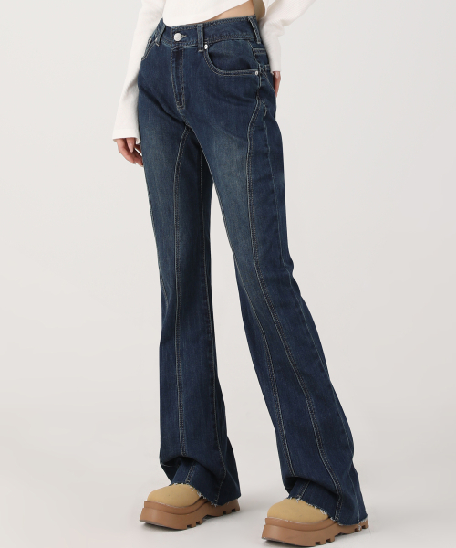 Thin Bootscut Pants DEEP BLUE