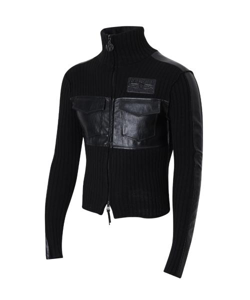Fabric Mix Neck Zip Up_[Black]