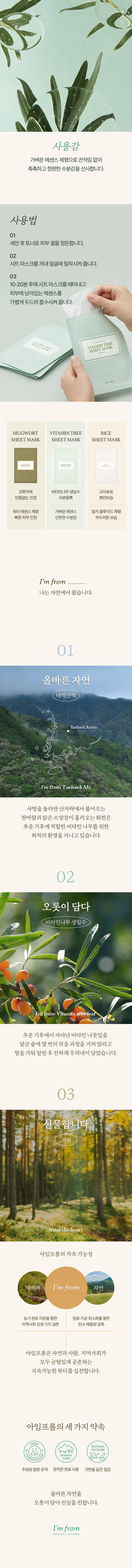 아임프롬(IMFROM)은 올바른 자연 그대로를 담아 피부 본연에 맞는 건강함과 균형적인 아름다움을 선사하는 내추럴 클린 뷰티 브랜드입니다.