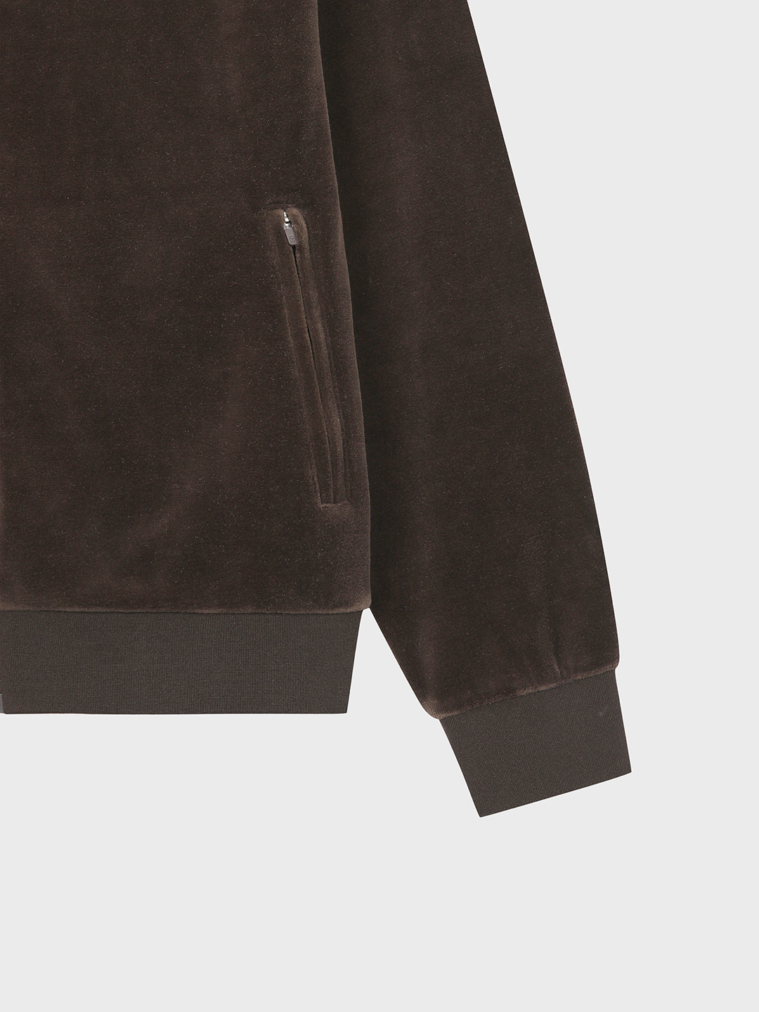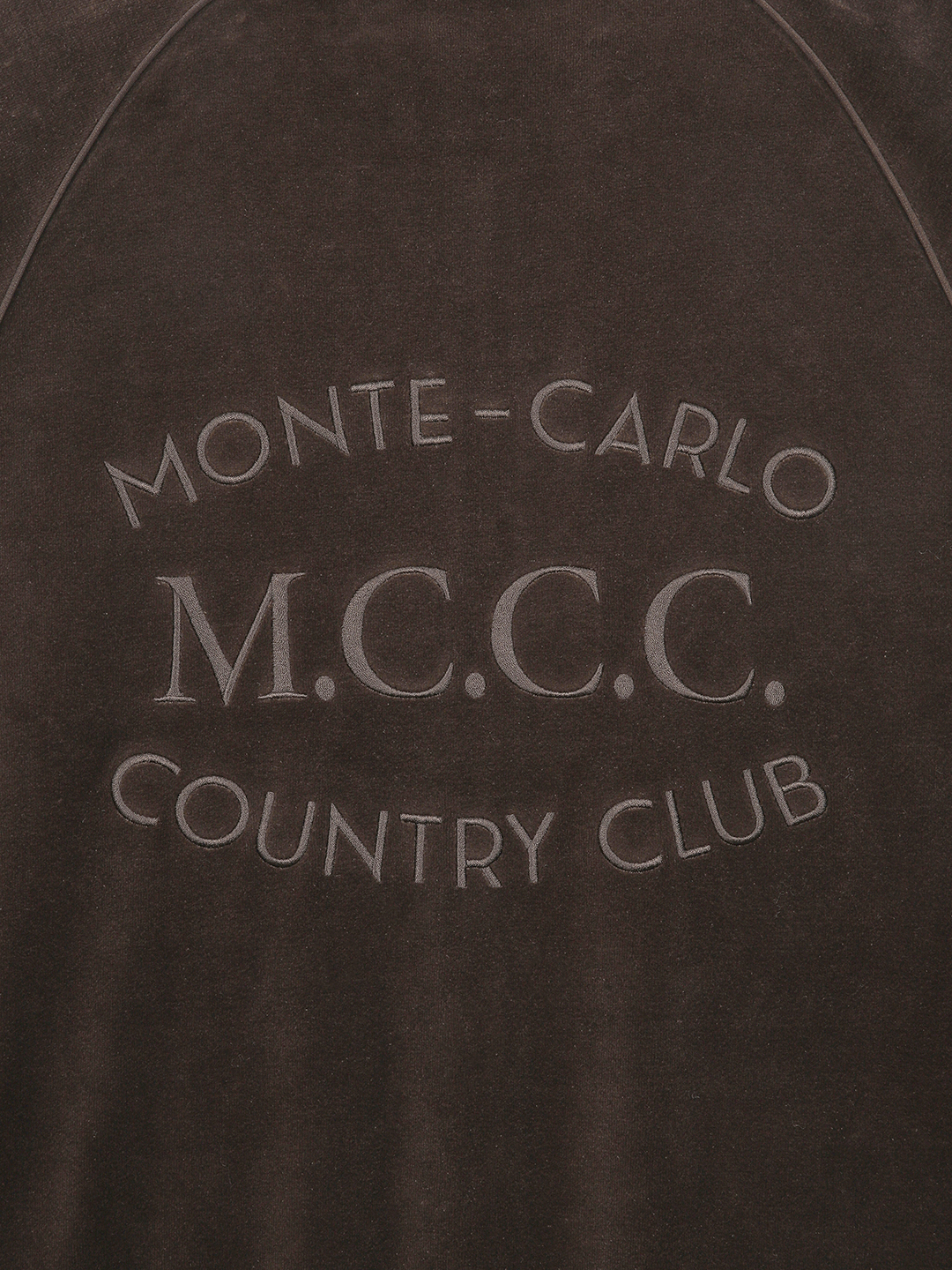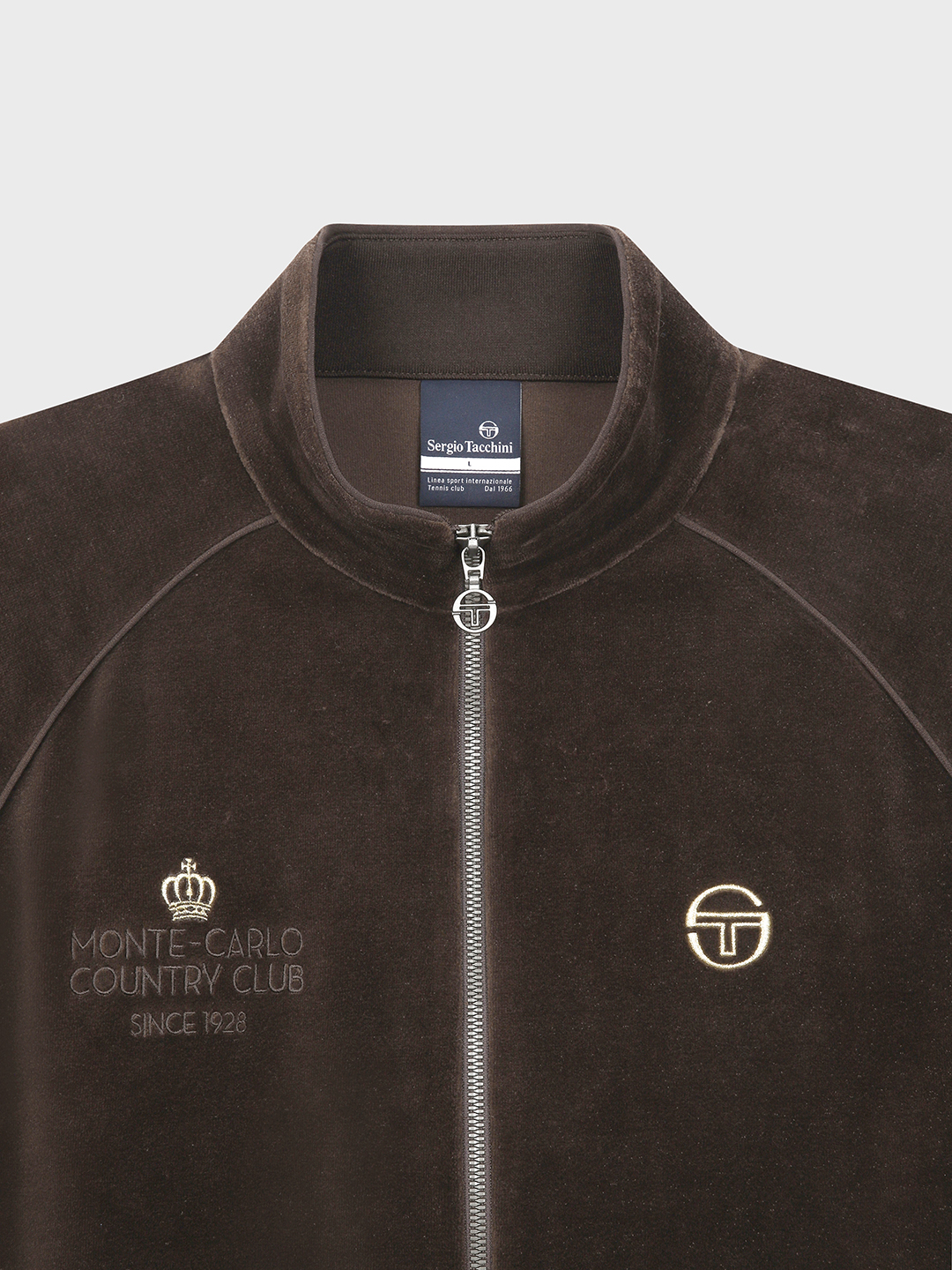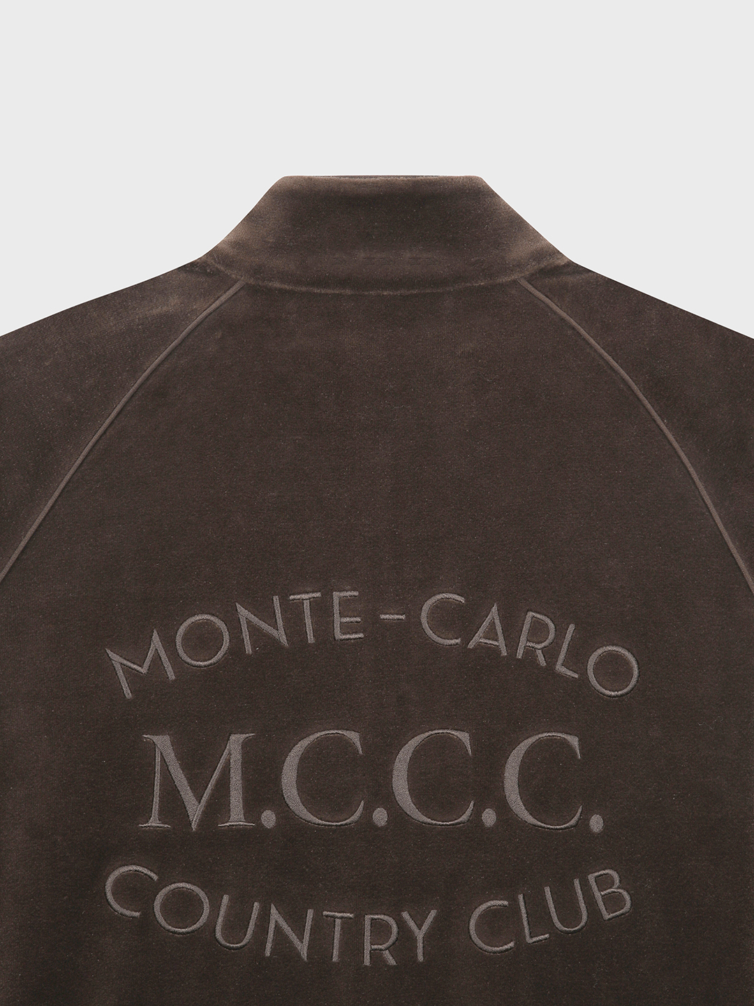 - 라글란 소매의 트레이닝 집업 스타일로 벨벳 원단의 고급스러움과 몬테카를로 아트웍 자수가 포인트