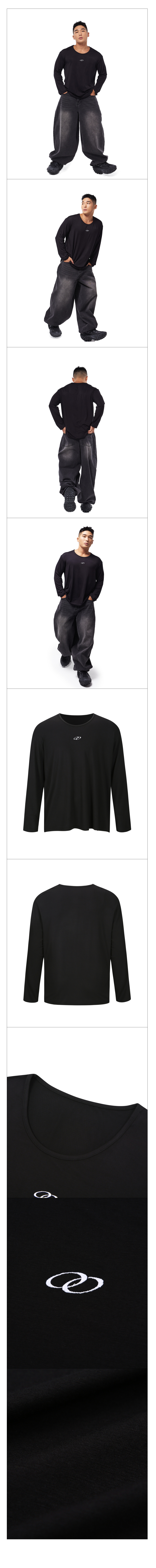 세미 유넥 루즈핏 무지 긴팔티셔츠 블랙