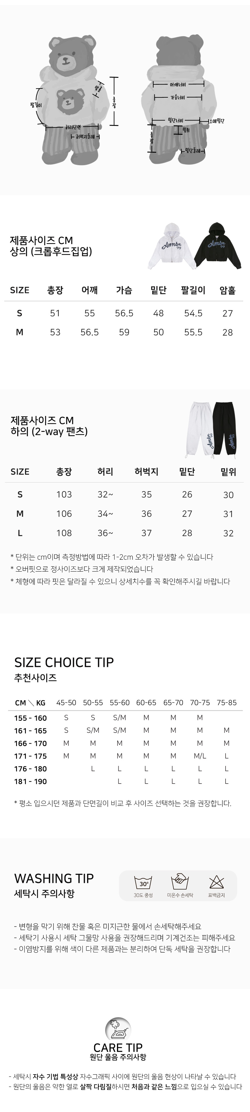 [패키지 세트] Denim AMBLER 오버핏 기모 크롭 후드 집업 자켓 투웨이 팬츠 트레이닝 셋업 (2color)
