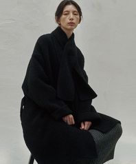 22FW 핸드메이드 수리알파카 머플러 코트 (블랙)