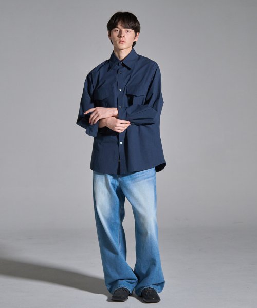 wide pocket shirts (navy)