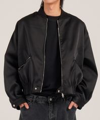 크롭 미니멀 코튼 패디드 블루종 자켓 (블랙)