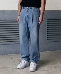 원턱 와이드 데님 팬츠 블루