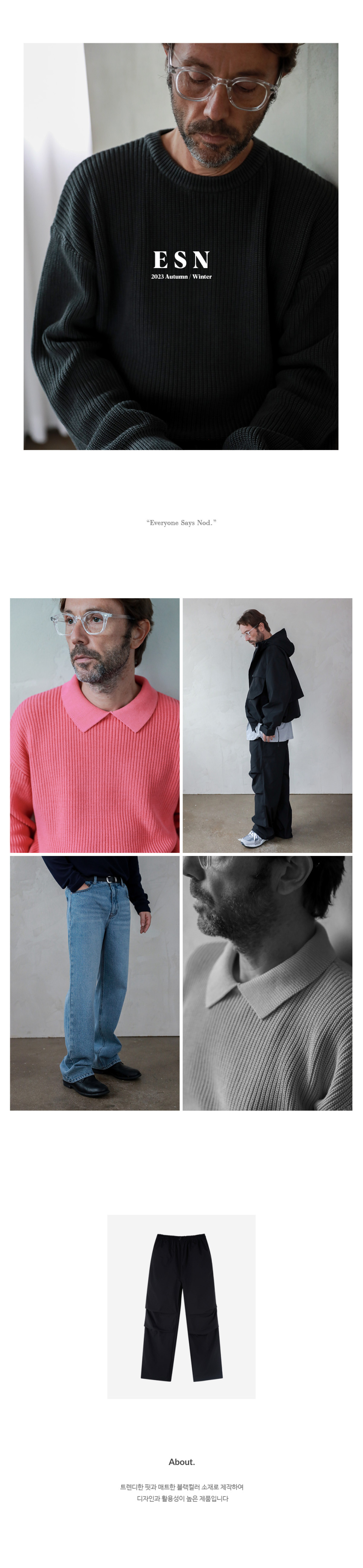 이에스엔(ESN)은 심플함과 모던함을 중심으로 트렌드를 대중적으로 해석하여 미니멀한 무드를 각각의 아이템에 풀어내며, 합리적인 가격으로 퀄리티 높은 제품을 소비자에게 제안하는 미니멀 컨템포러리 브랜드입니다.