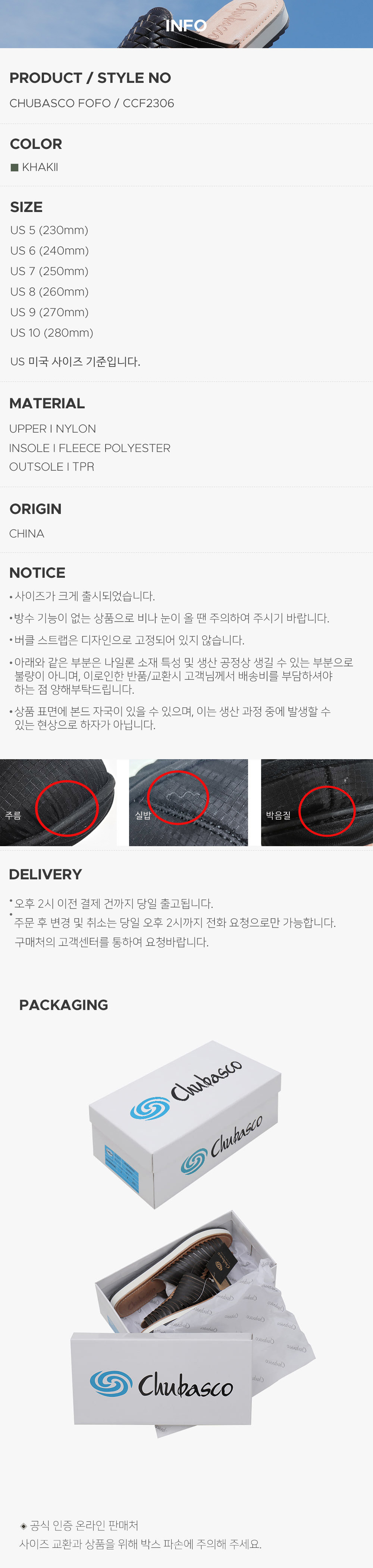 CHUBASCO(츄바스코)는 미국 샌디에이고에 본사를 둔 아웃 오더 슈즈 메이커입니다. 해안가 도시에서 캠핑과 서핑 등의 스포츠를 즐기며 자란 디자이너들에 의해 디자인되었습니다. 멕시코 전통신발인, 가죽을 땋아 만든 'Huarache'에서 영감을 얻어 나일론, 레더 위브, 소가죽 등의 현대 소재와 기술을 응용하여 편안함과 쾌적함을 제공합니다.