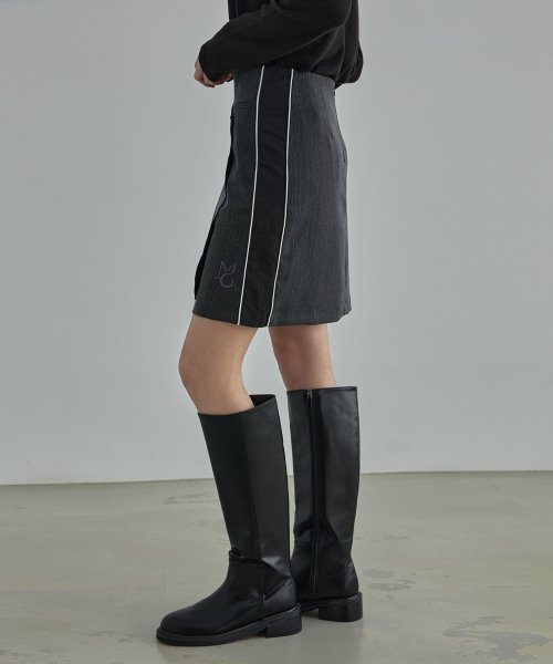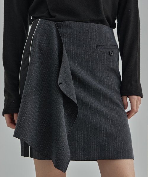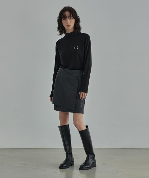 wool bland pin tuck wrap skirt - Charcoal