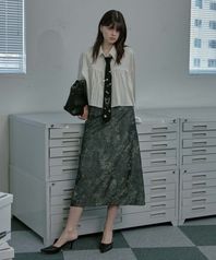Crack silky long skirt -charcoal
