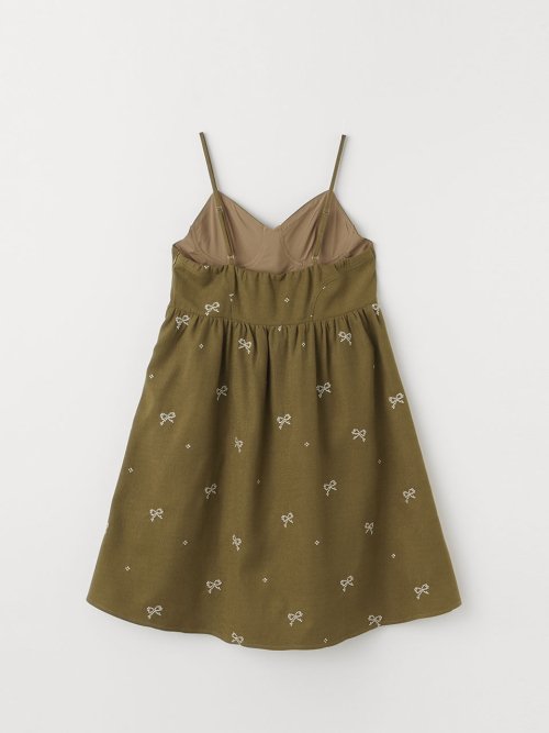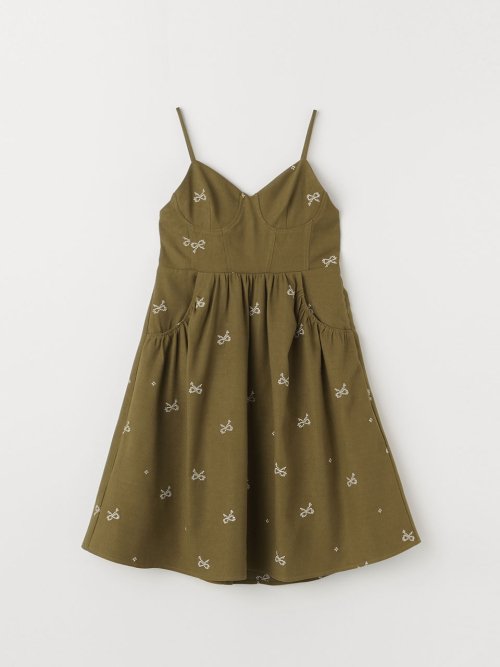 RIBBON EMBROIDERED BUSTIER DRESS_OLIVE