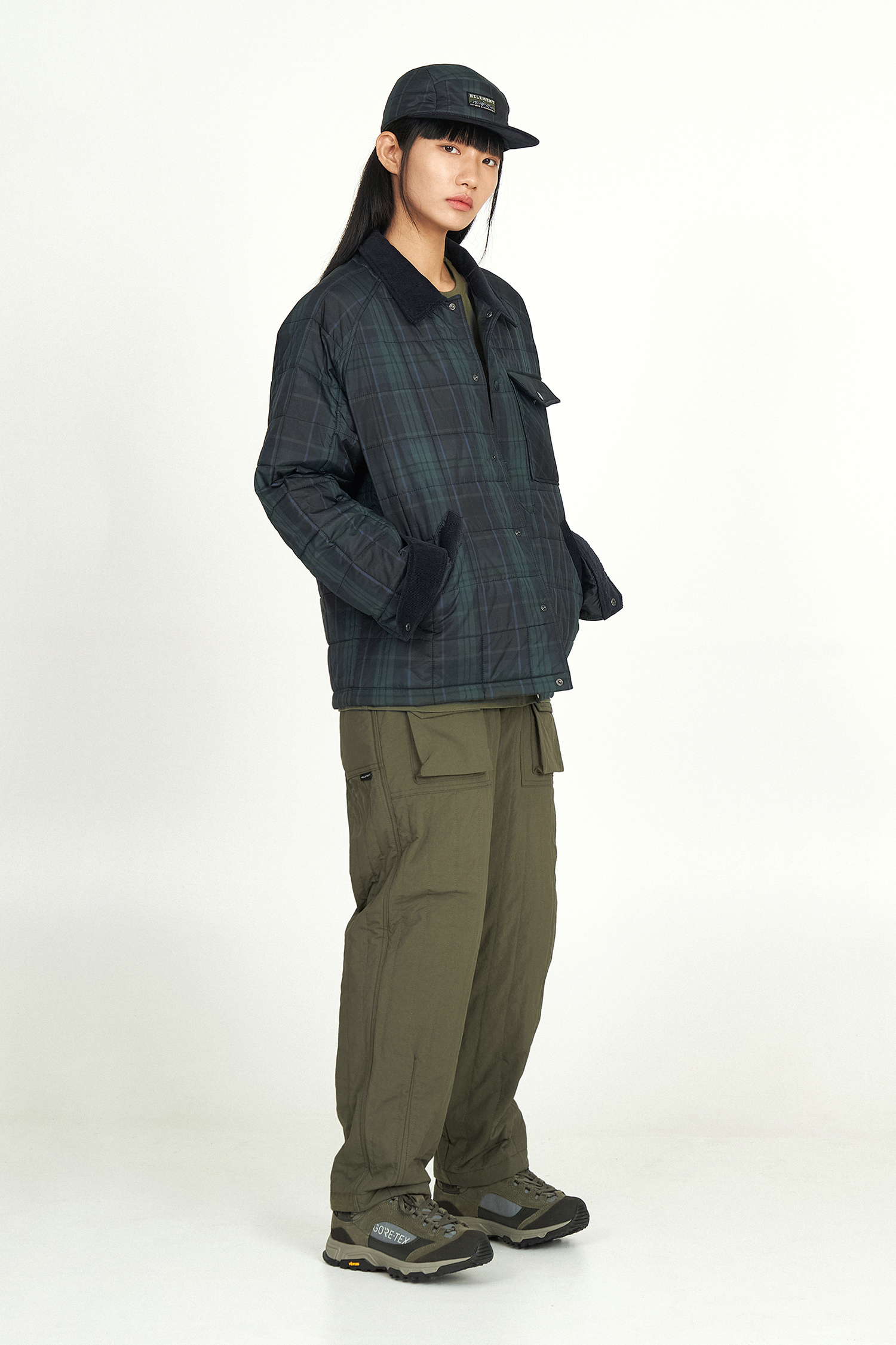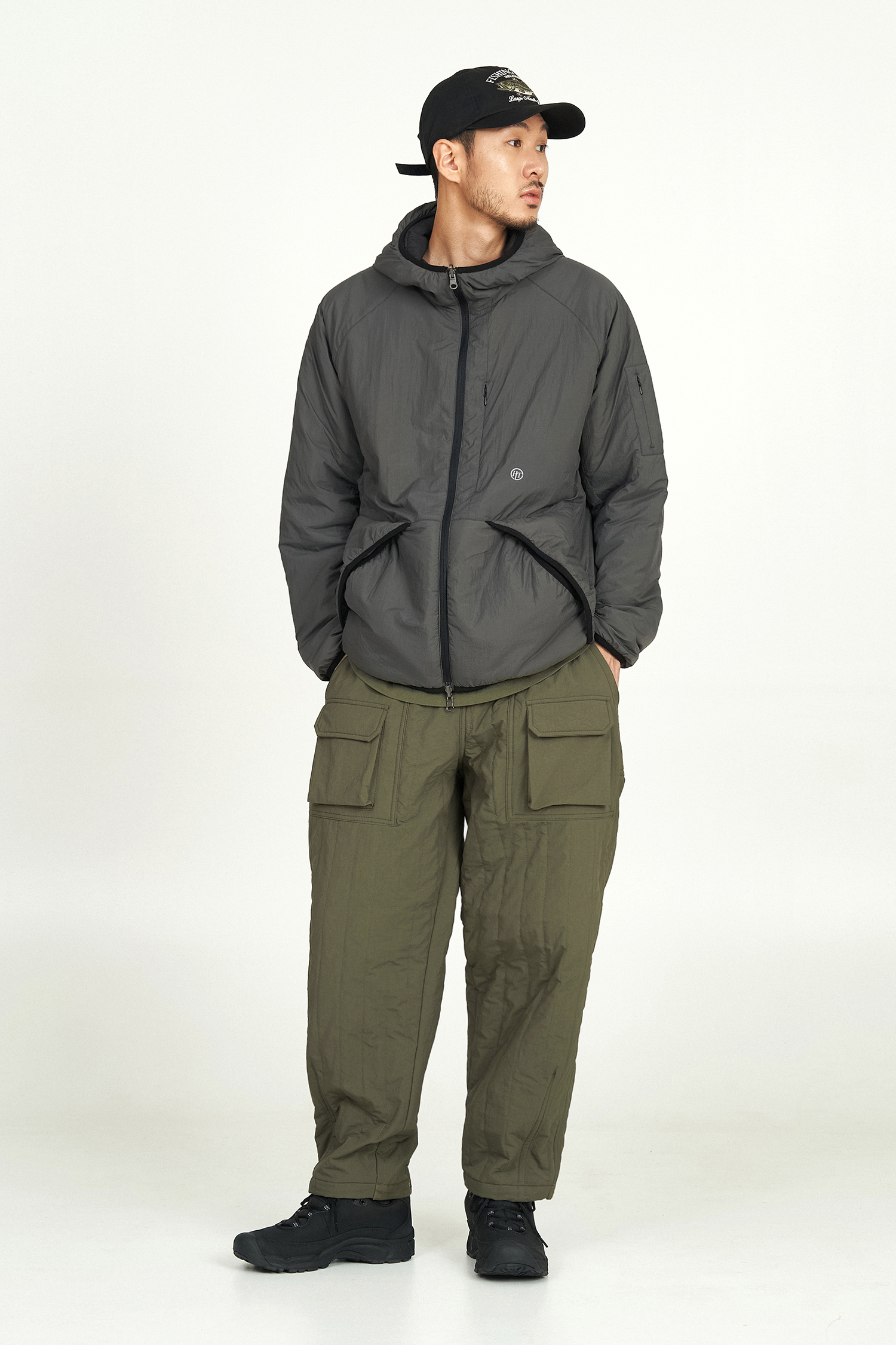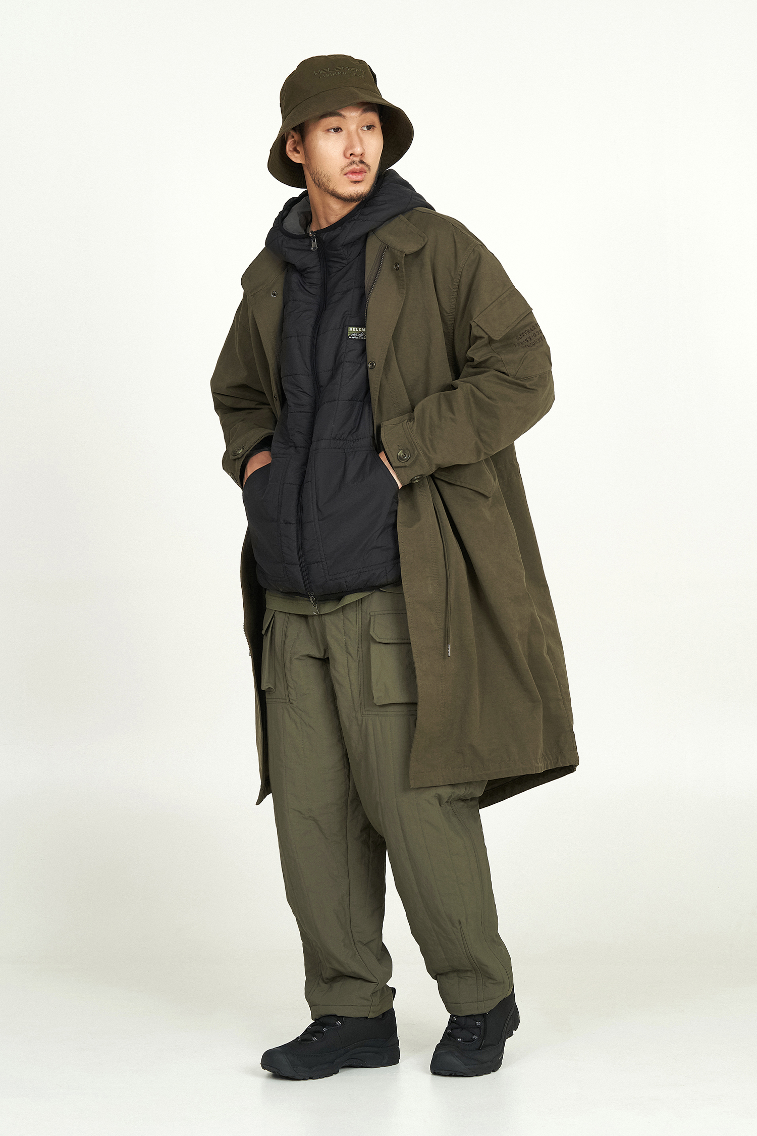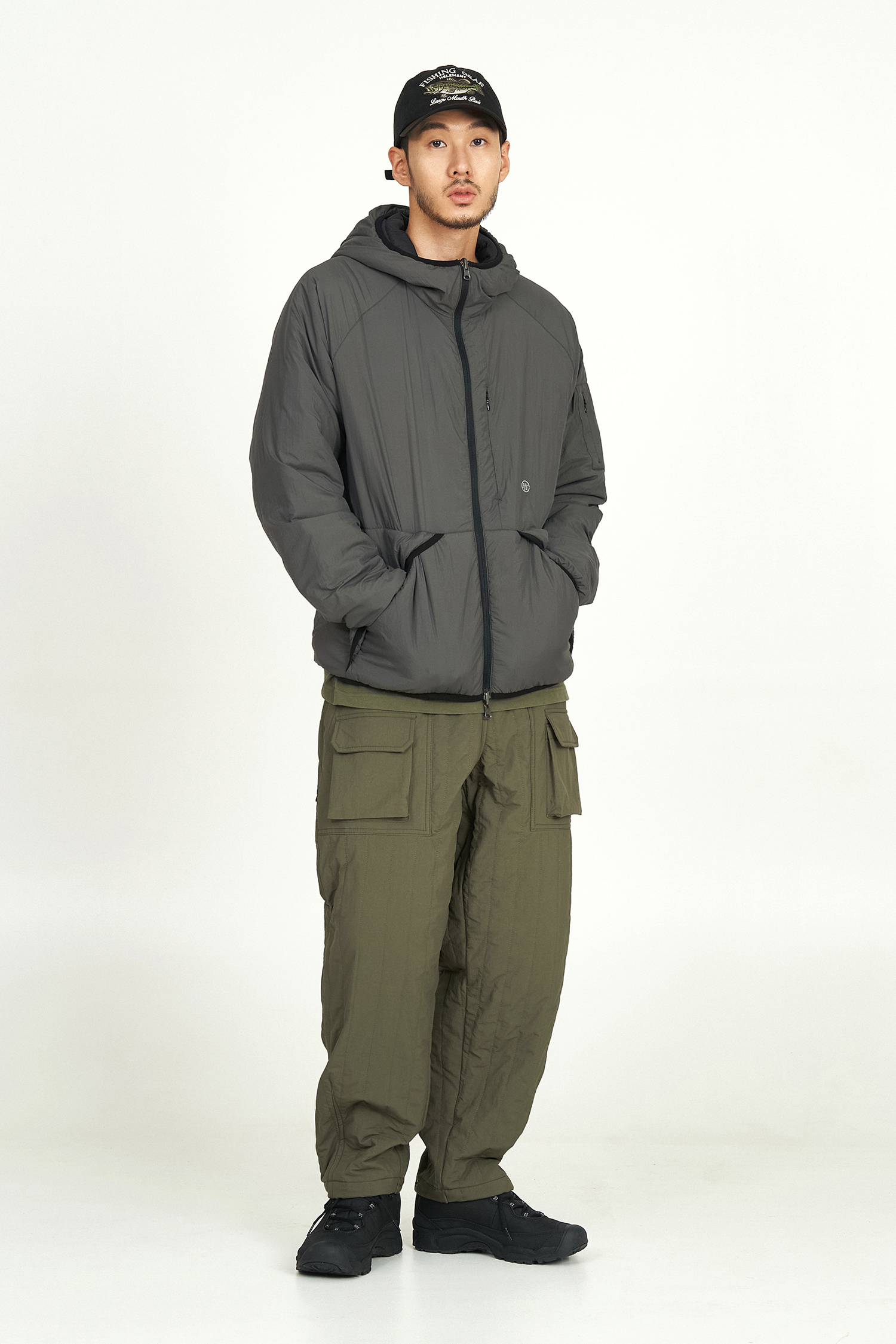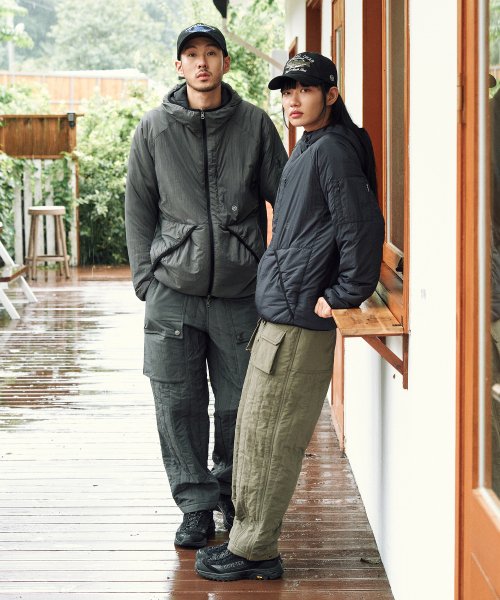 디자인 스타일을 살리는 빅포켓과 아웃포켓이 적용되었으며 밑단 조절 스냅 디테일은