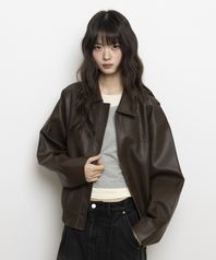 2WAY PU 미니멀 레더 자켓_브라운