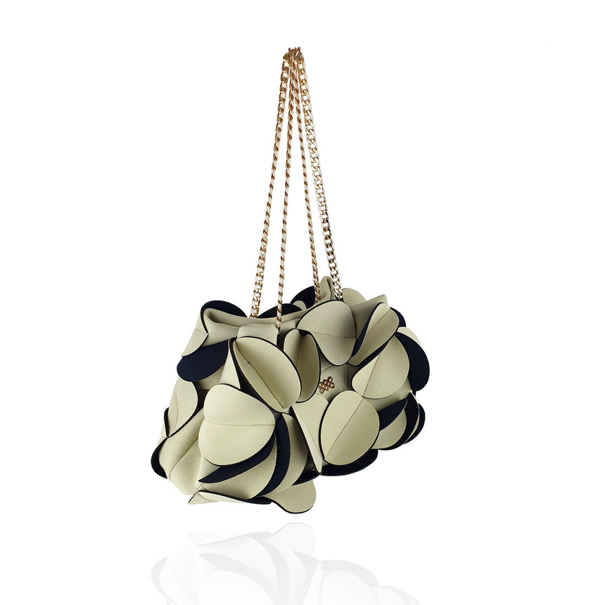 네오프렌소재로 만들어진 꽃을 연상시키는 가방입니다.
