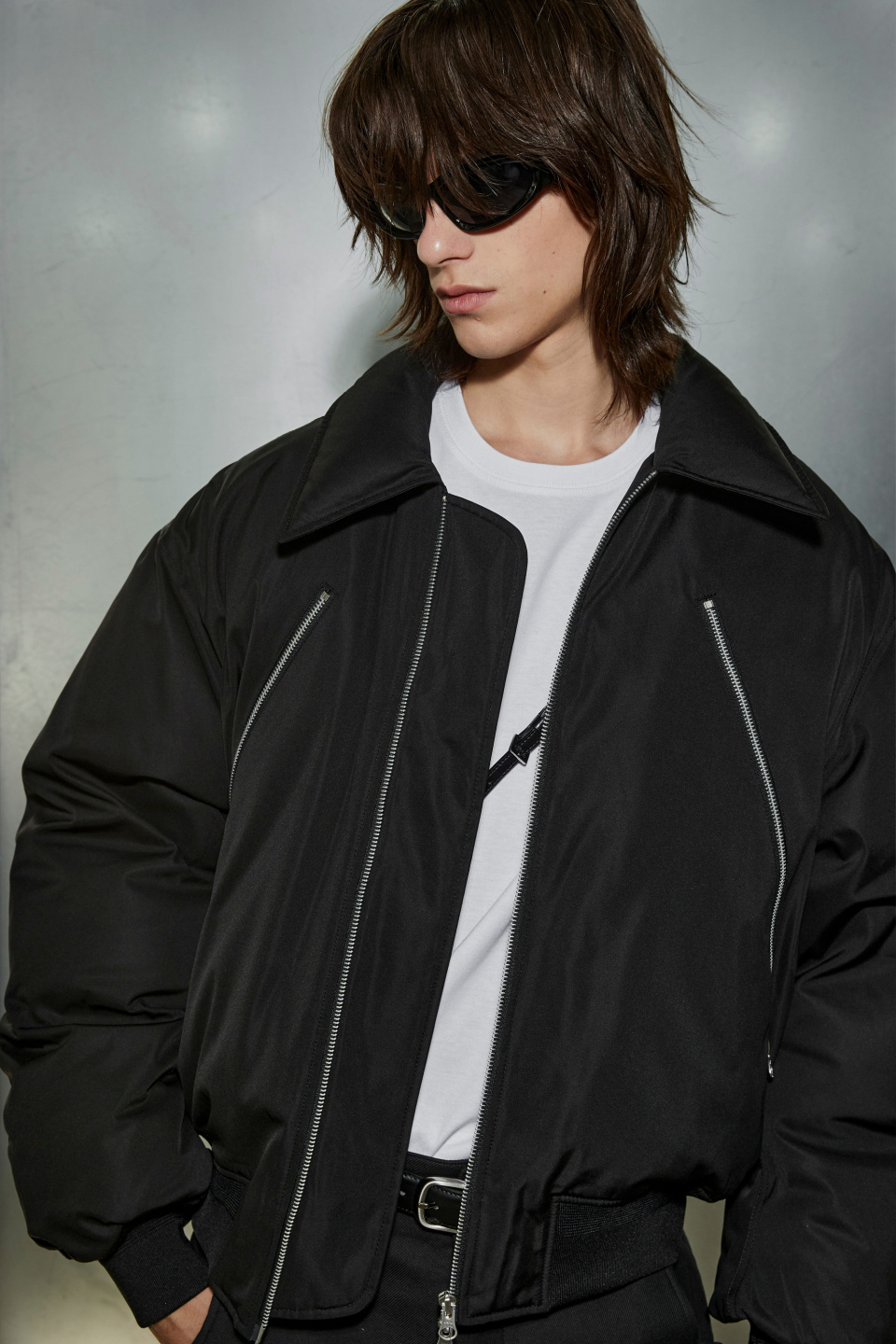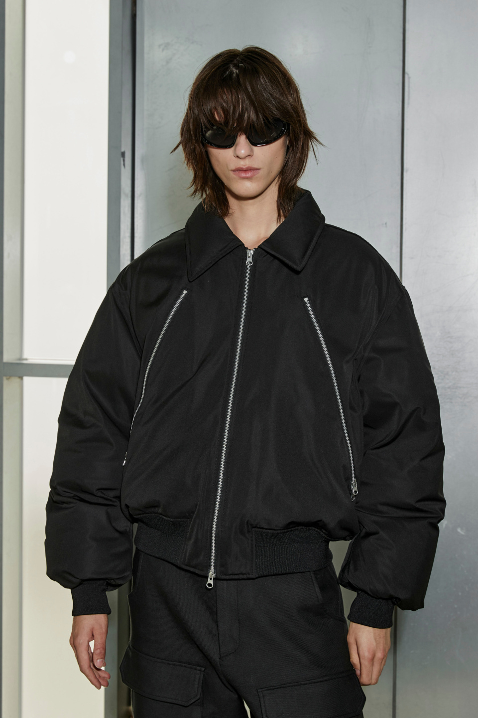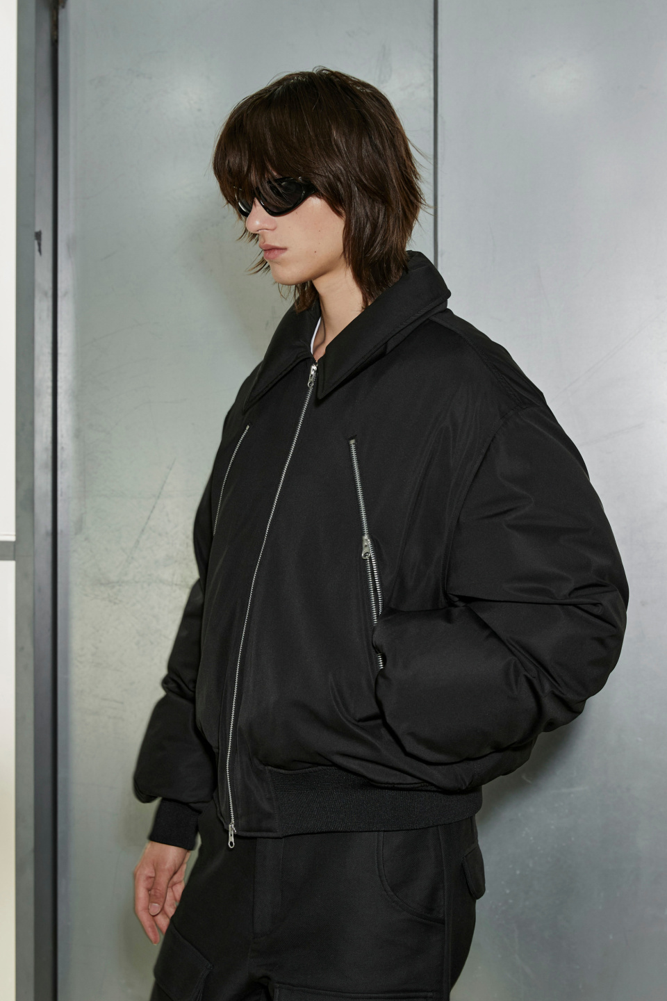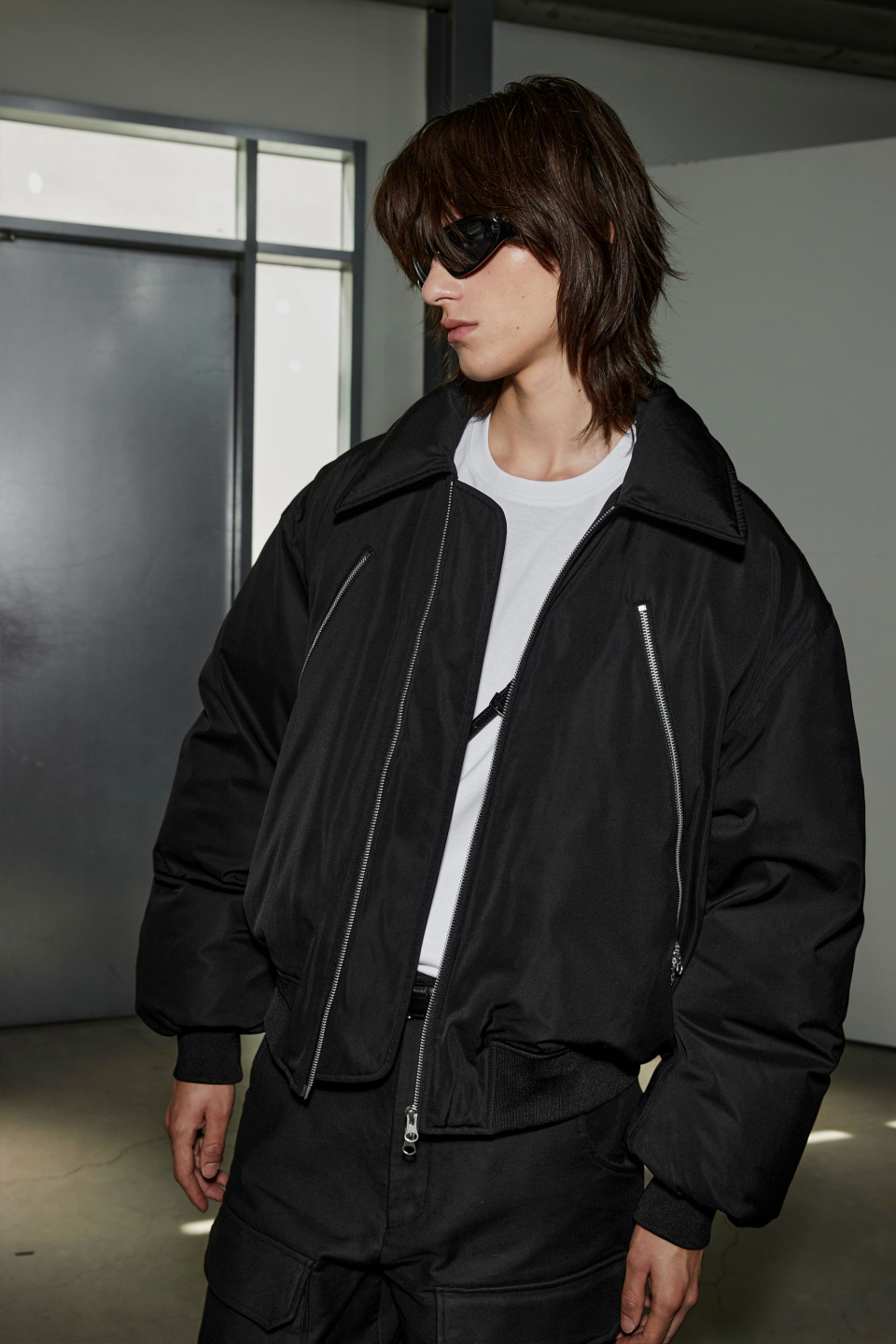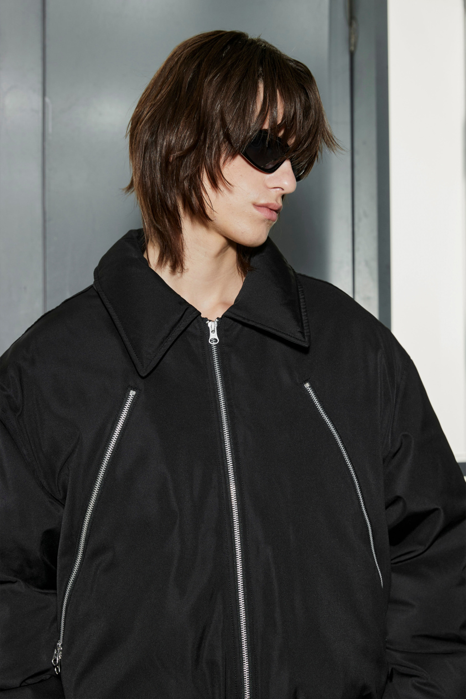 입체감 있는 카라 디자인으로 포멀한 연출이 가능하며 샤이니한 지퍼 디테일로 간결한 포인트가 특징입니다.
