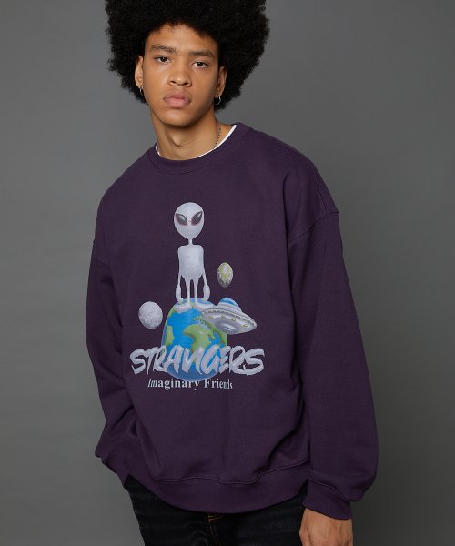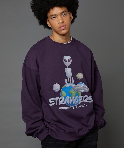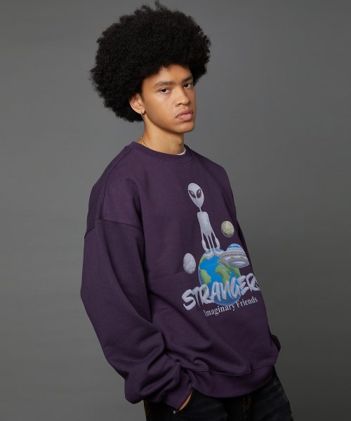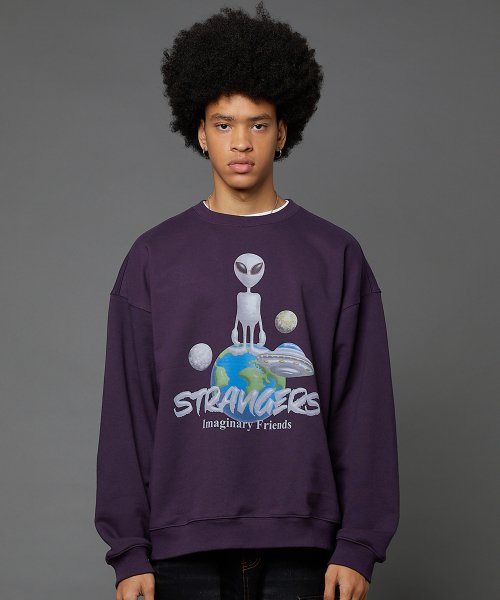 에일리언 유니버스 아트웍 오버핏 맨투맨 딥퍼플