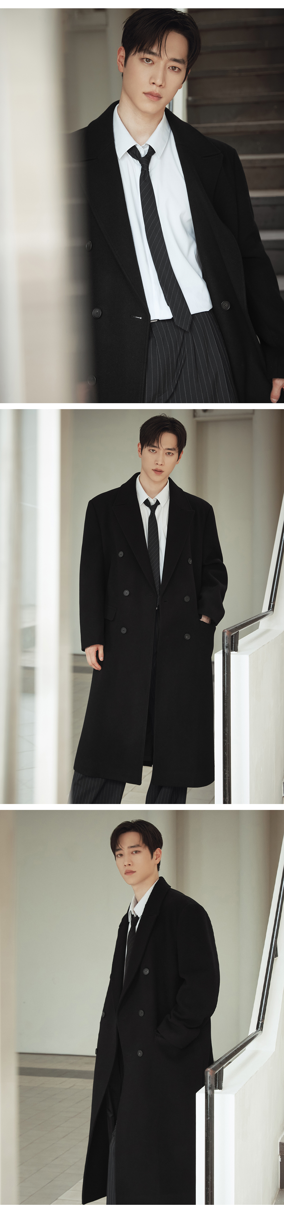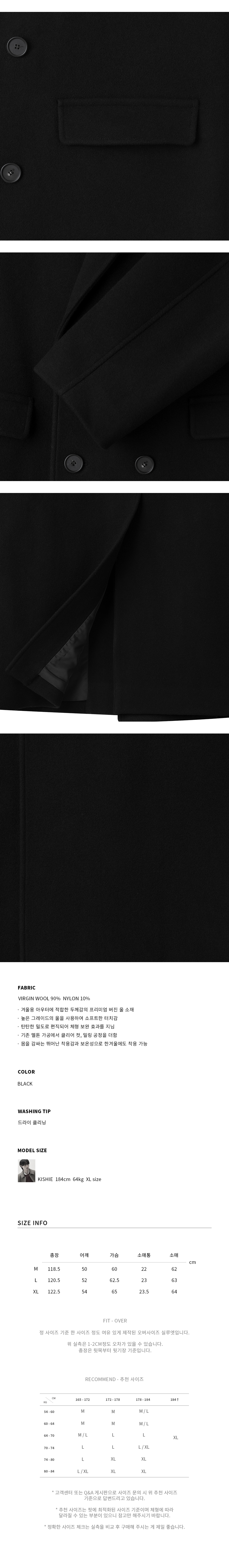 [WOOL 90] 오블리크 울 더블 코트 [블랙]