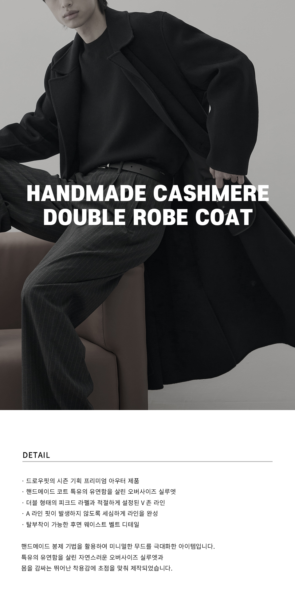 핸드메이드 캐시미어 더블 로브 코트 [BLACK]