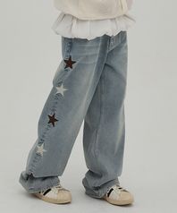 스타 데님 팬츠 옐로우 워시드 라이트블루