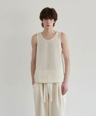 유넥 텍스처 니트 슬리브리스 탑(아이보리)