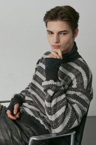 멀티 스트라이프 울 니트 (그레이)