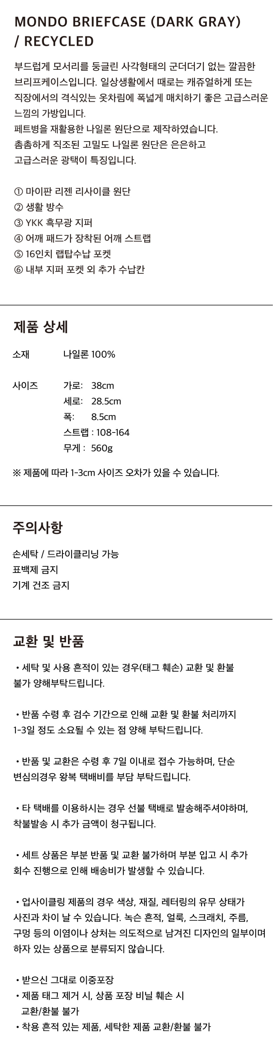 MONDO BRIEFCASE (DARK GRAY) / RECYCLED