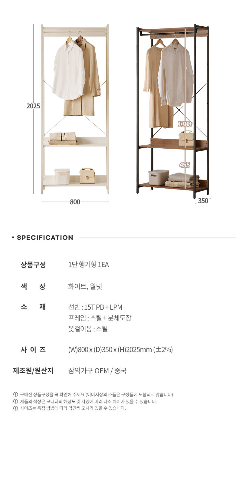 에린 철제 드레스룸 시스템 옷장 800 1단 행거형