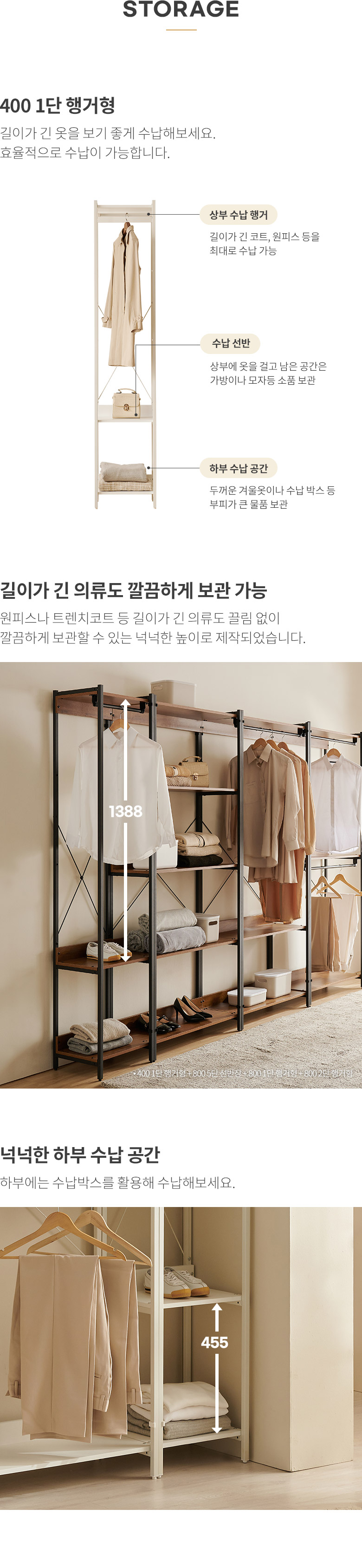 에린 철제 드레스룸 시스템 옷장 400 1단 행거형