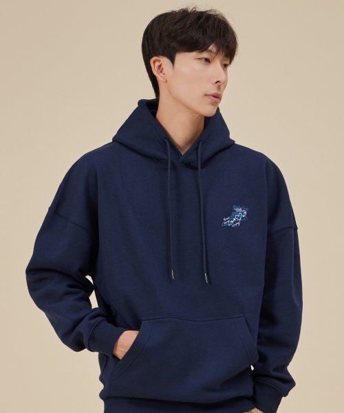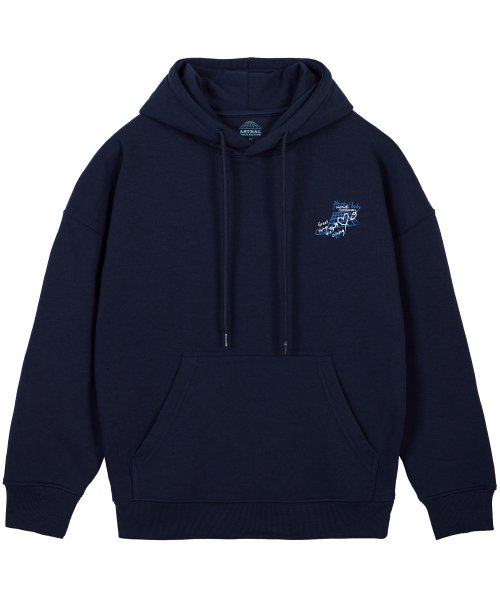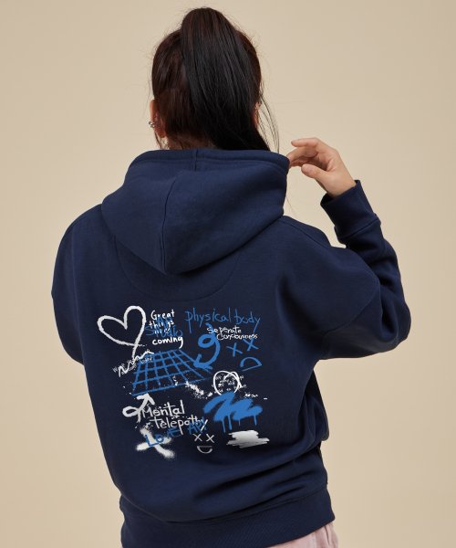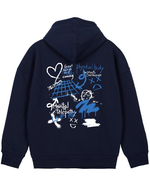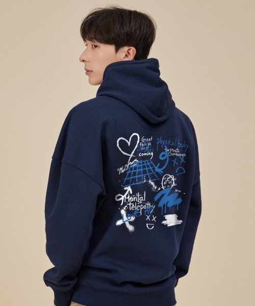 그라피티 오버핏 와이드 숄더 후디_네이비