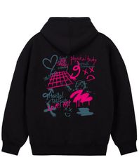 그라피티 오버핏 와이드 숄더 후디_블랙