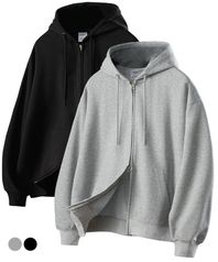 더블 투웨이 지퍼 오버핏 스웻 후드 집업 2COLOR