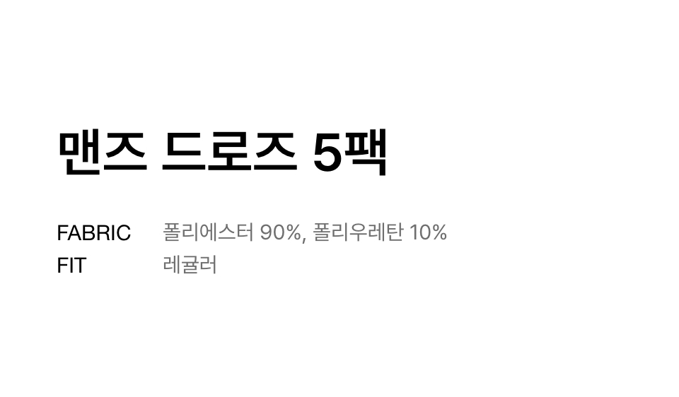 [쿨탠다드] 맨즈 드로즈 5팩