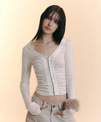 Candela Hooked Shirring Long Sleeve Top (Ivory)