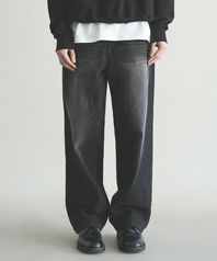 M194 워싱 세미 와이드 데님 팬츠_블랙 [숏기장 추가]