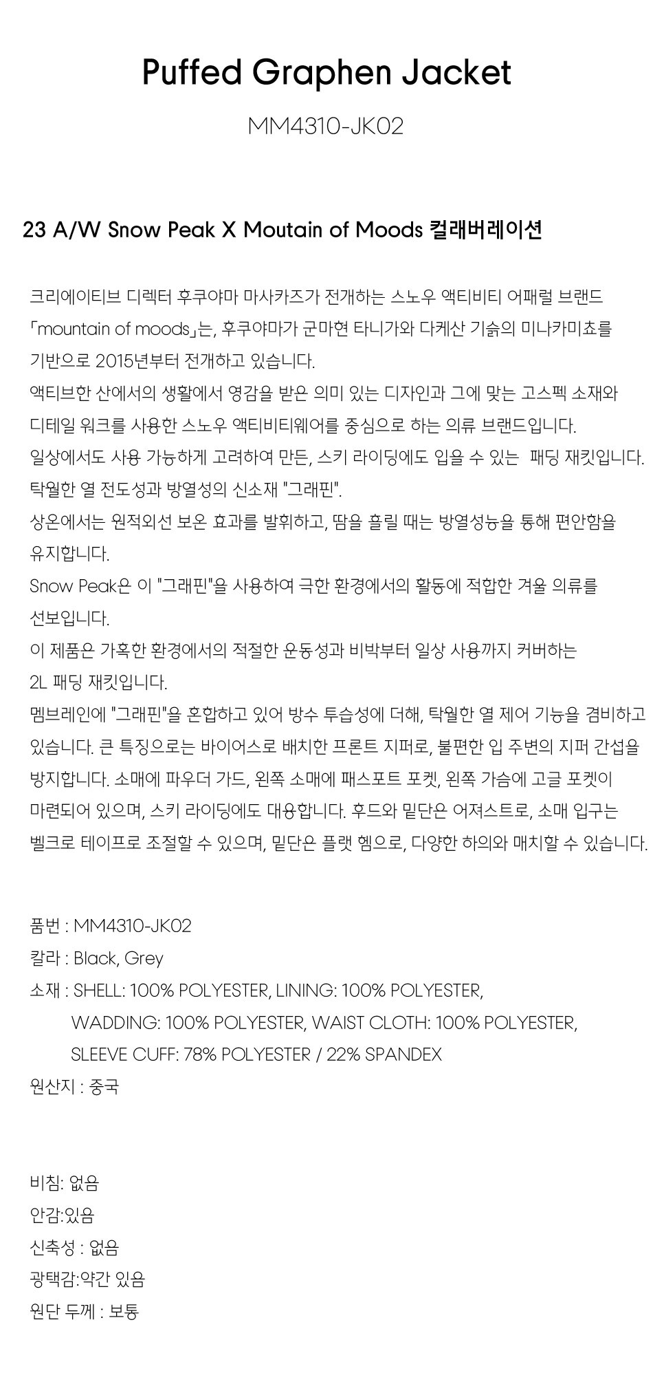 3L 그래핀 자켓 - 그레이 / MM4310-JK01GY