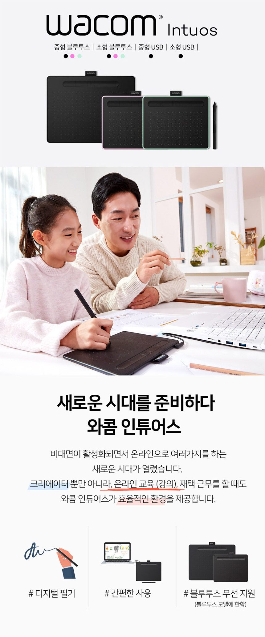 인튜어스 타블렛 중형 Intuos CTL-6100WL 블루투스 3Color (클립스튜디오 증정)
