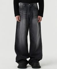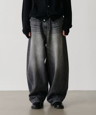wide curved denim pants (black)