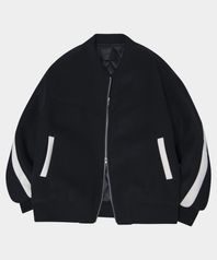 배색 절개 디테일 투웨이 스타디움 봄버 패딩 자켓[블랙]