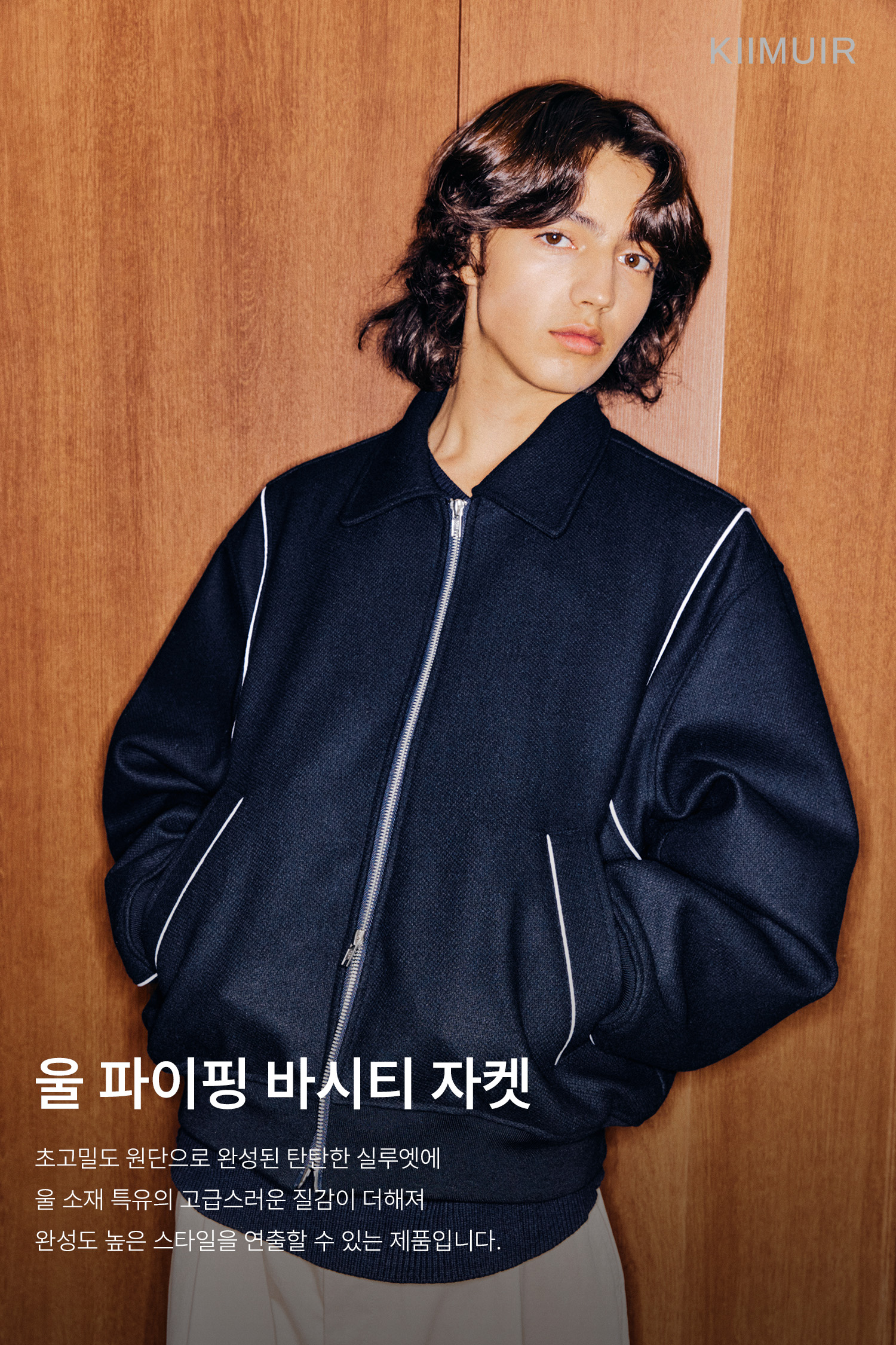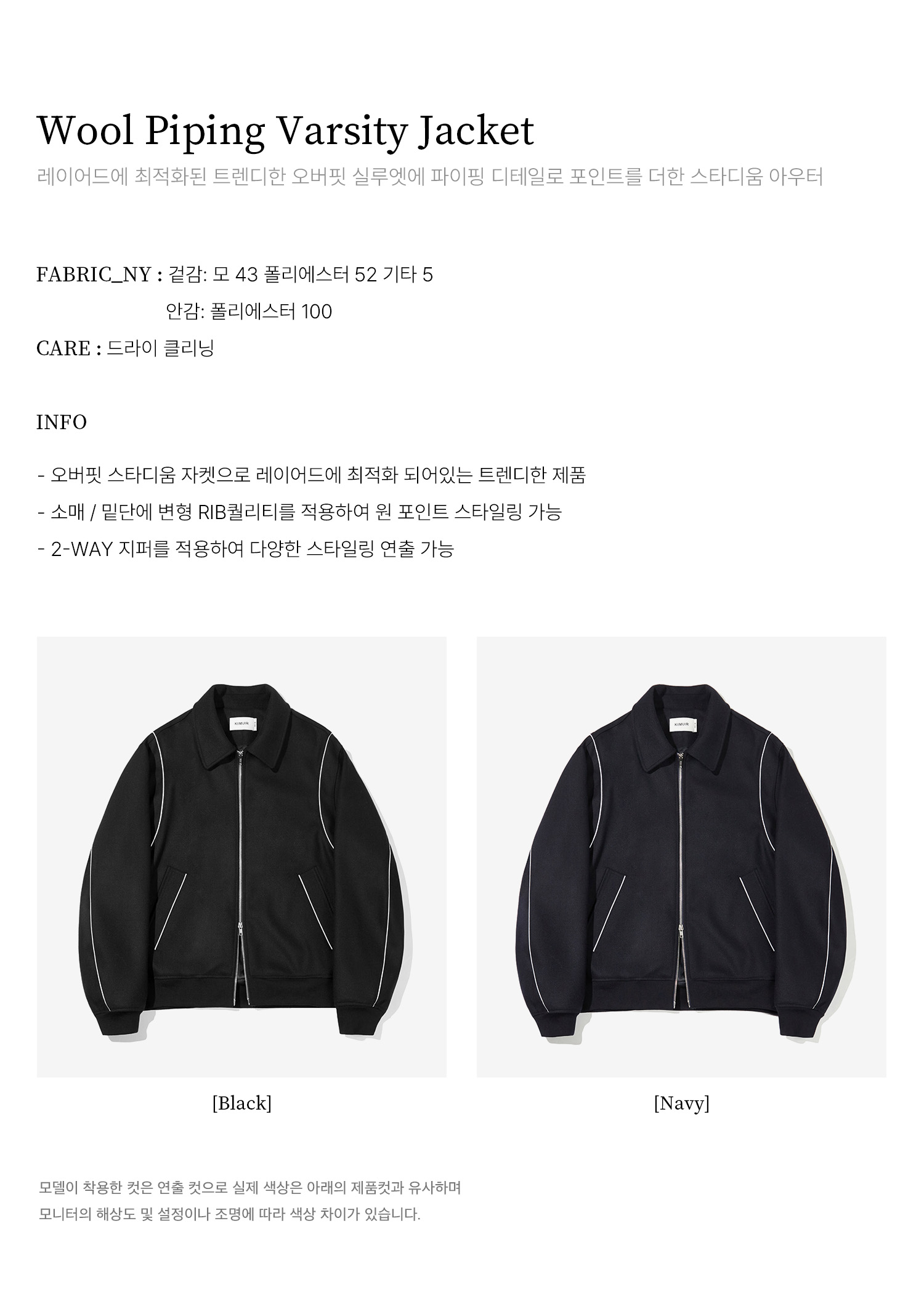 울(WOOL) 파이핑 바시티 자켓 CS_네이비