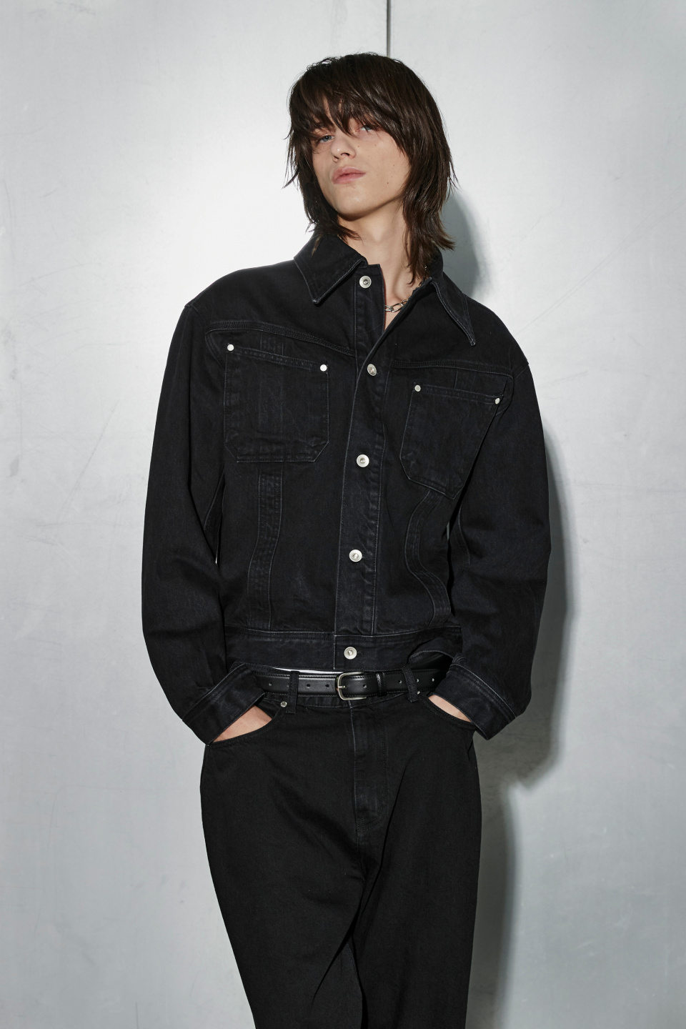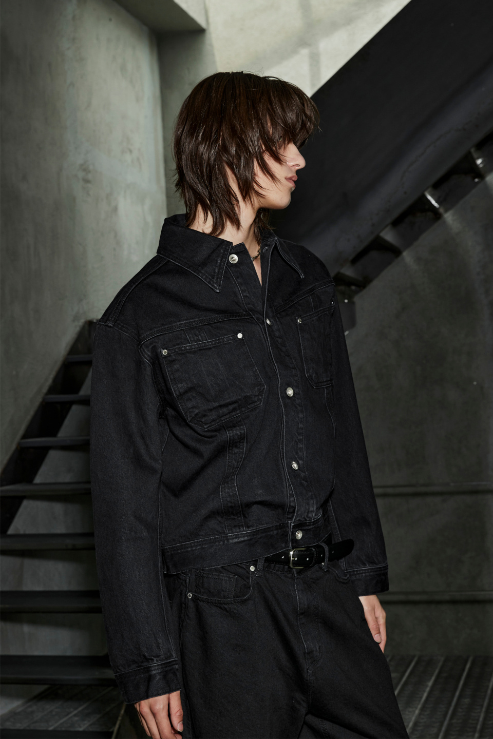 앞판과 소매에 3줄 스티치와 대칭되는 언밸런스한 포켓으로 섬세함을 더했으며, 14.5oz의 견고한 두께감과 크롭 한 기장감이 감각적인 실루엣을 연출합니다.