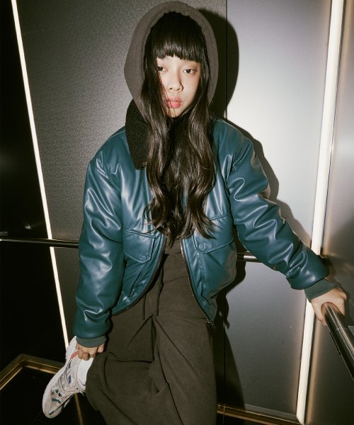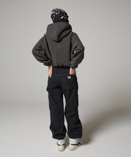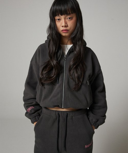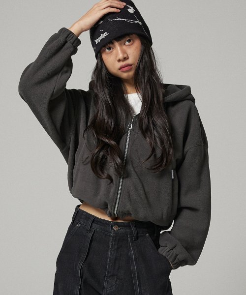 카루도 3205A 플리스 루즈핏 크롭 그레이 후드집업