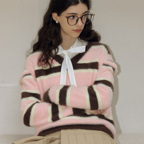 DD_Color block striped knit top_BROWN