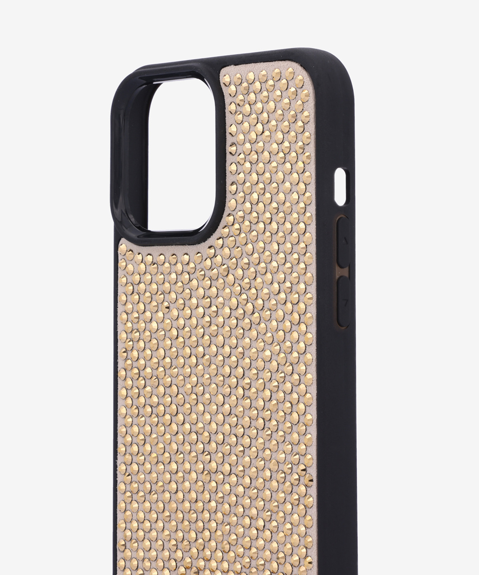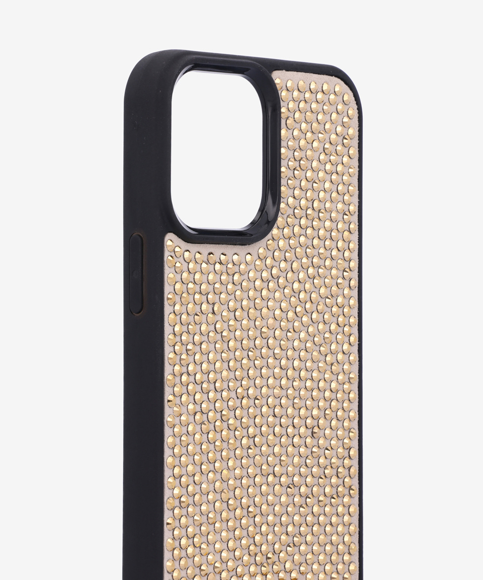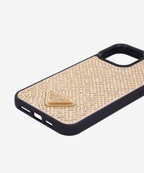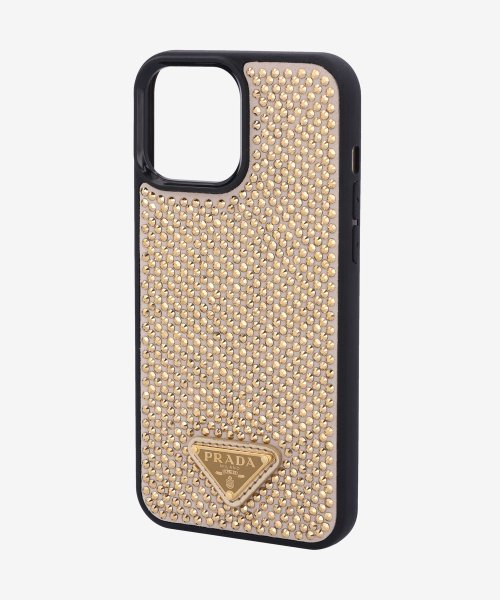 트라이앵글 로고 라인스톤 아이폰 13 프로 맥스 케이스 - 블랙:골드 / 1ZH1502AWLF0522
