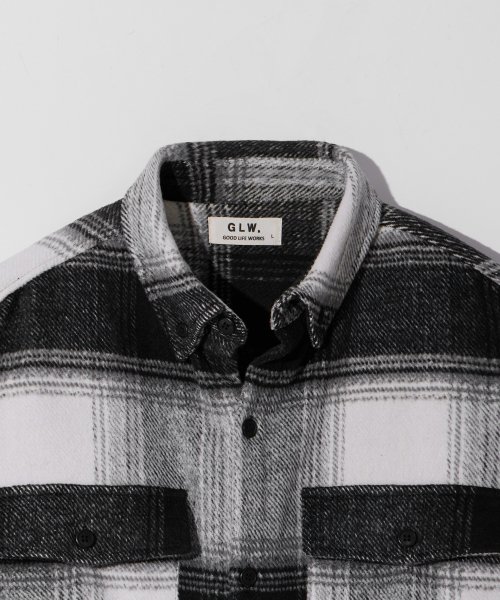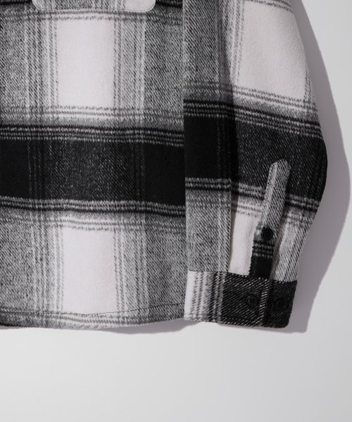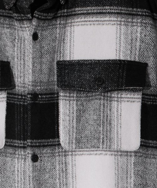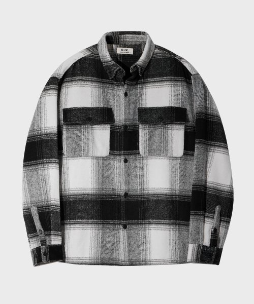 오버핏 헤비 투 포켓 체크 셔츠 자켓 블랙