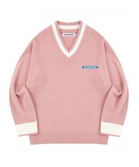 베이직 브이넥 니트 스웨터_핑크