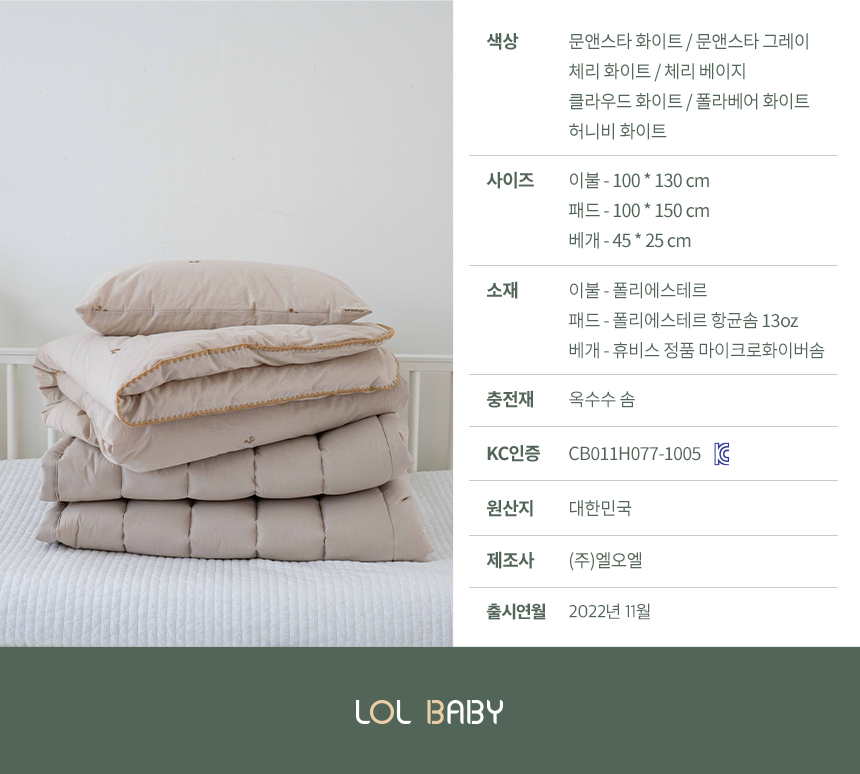 롤베이비(LOLBABY)는 우리 아이가 사용한다는 마음으로 안정성이 검증된 제품을 착한 가격과 좋은 품질로 제공합니다. 아이의 건강하고 행복한 꿈을 만들기 위해 노력합니다.